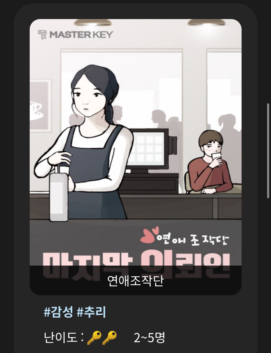 | 🧚🏻56번째 방탈출🧚🏻강남 방탈출/비트포비아/데스티니앤드타로/데앤타 강추 후기 (5) | 2024.10.12 |