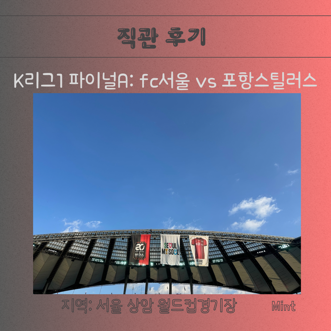 | K리그1 두 번째 직관 후기/상암 월드컵경기장 3열 시야/fc서울 5연승 (0) | 2024.08.25 |