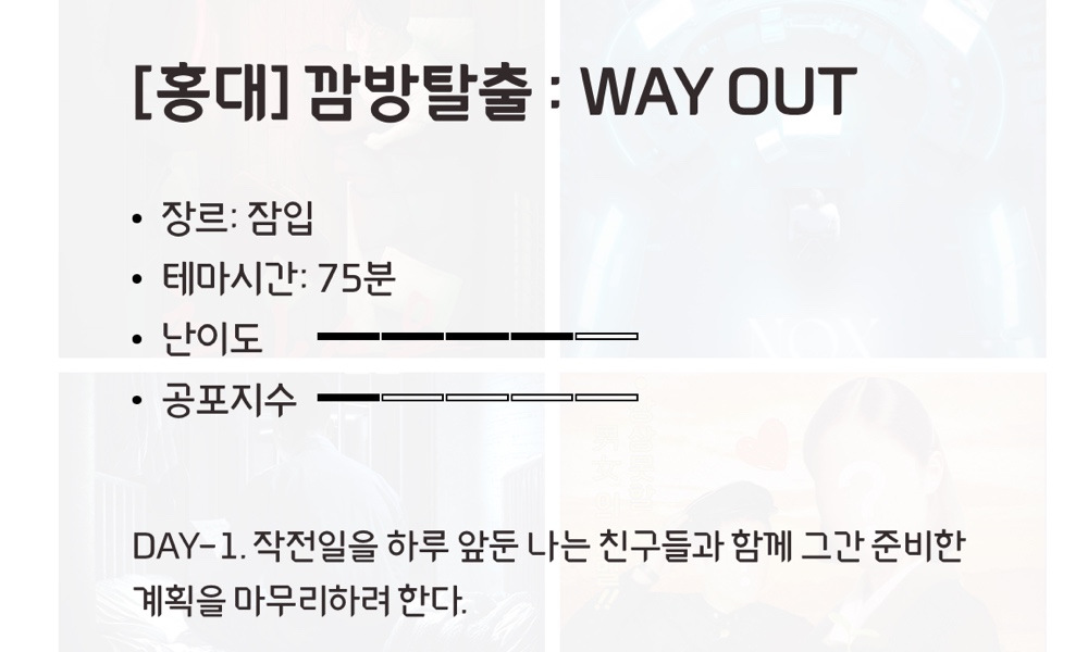 | 🧚🏻♂️41번째 방탈출🧚🏻♂️ 홍대 방탈출/엠(M) 혼방 후기 (0) | 2024.08.31 |