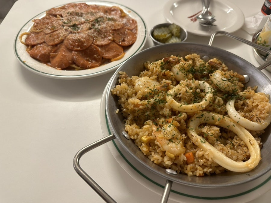 저희는 2인이서 페퍼로니스파게티와 씨푸드잠발라야를 시켰슴다!