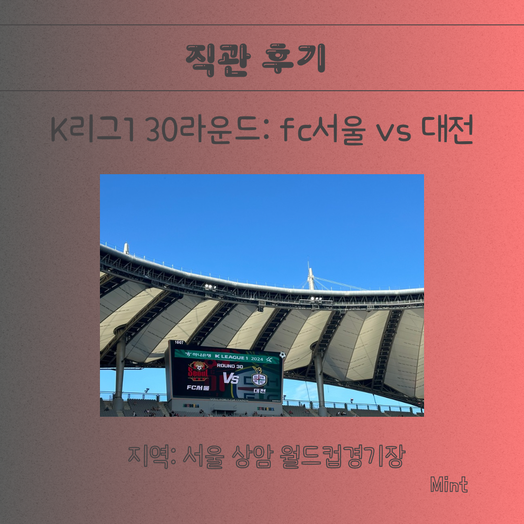 | K리그1 두 번째 직관 후기/상암 월드컵경기장 3열 시야/fc서울 5연승 (0) | 2024.08.25 |