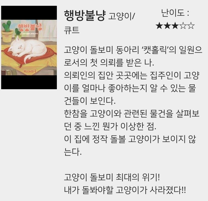 🧚🏻♂️60번째 방탈출🧚🏻♂️일산 방탈출/입문용 방탈출/룸즈에이/행방불냥 후기